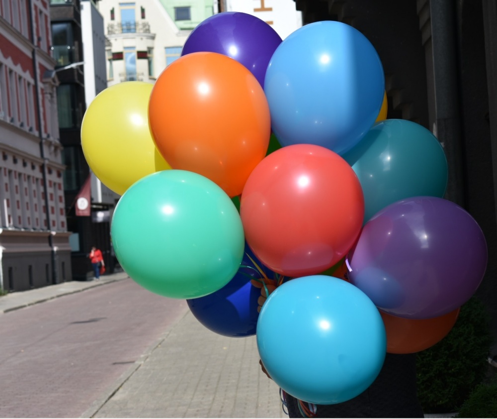 - dažādas formas, izmēru un krāsu balonus, svētku aksesuārus, suvenīrus un „jokus";