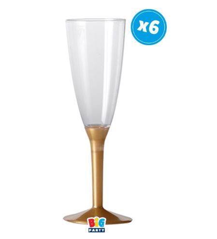 Šampanieša glāzes caurspīdīgas ar zelta kājiņu 130ml 1/6gab