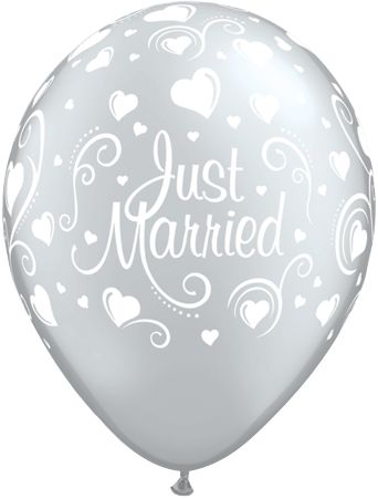 Lateksa baloni print round 30cm/11" 1/6gab Just Married Hearts silver