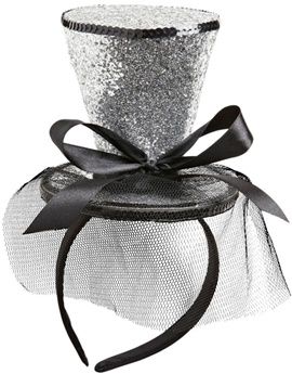 Cepure Mini Cilindrs sudraba ar spīdumiem/banti/plīvuru