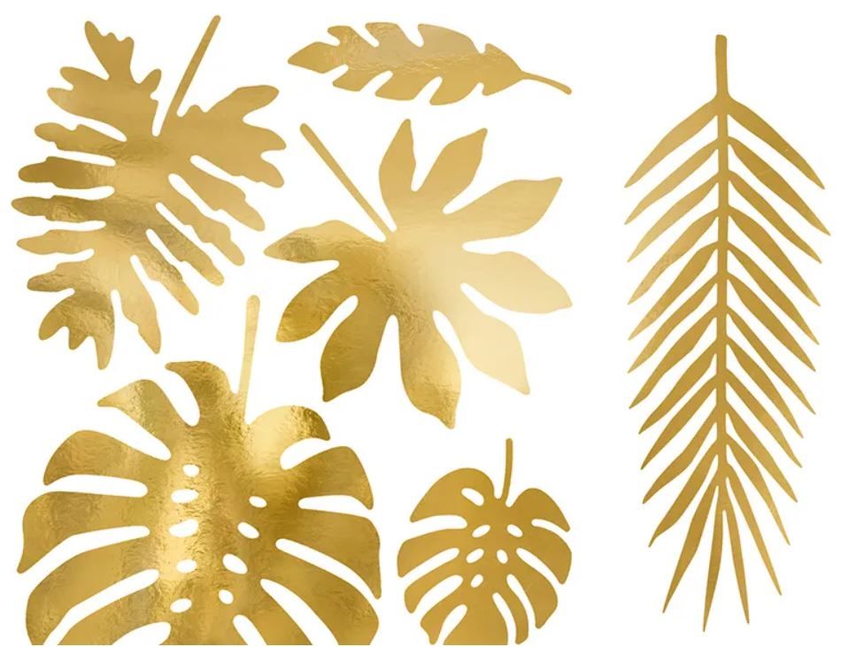 Dekors Tropu lapas zelta h16,5-31cm 1/21gab (7veidi x 3gab) papīra
