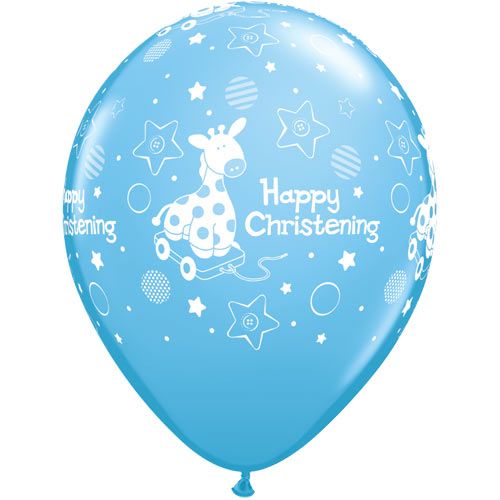 Lateksa baloni print round 30cm/11" 1/6gab Christening Soft Giraffe pale blue