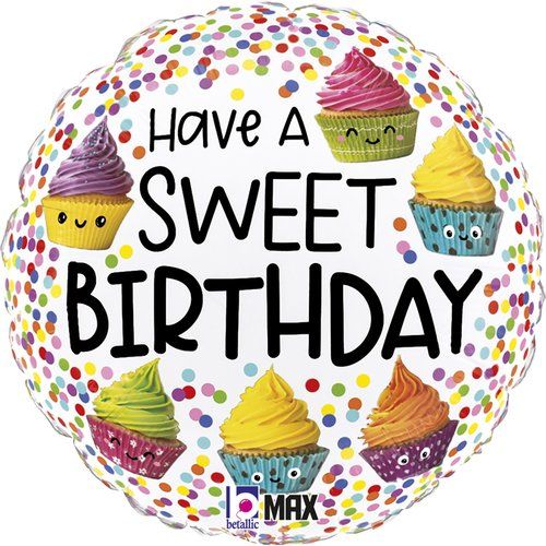 Folija balons round print 18"/46cm 1/1gab Cute Cupcakes Birthday