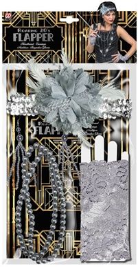 Komplekts 20.gadu (apsējs ar spalvām,cimdi, kaklarota, auskari)