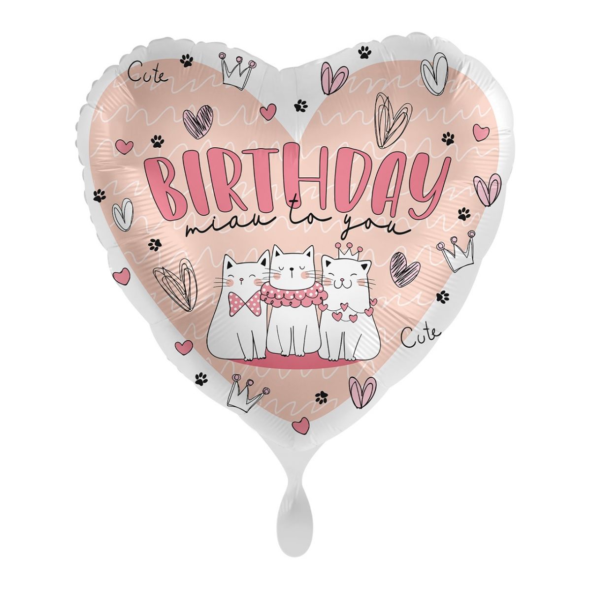Folija balons heart print 17"/43cm 1/1gab Kitty Birthday miau to you