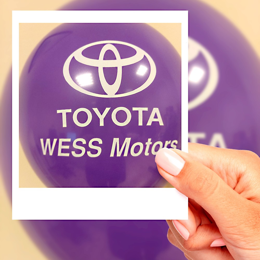 Логотип или текст печатается на латексных шарах различных форм и размеров (диаметром от 30 см до 150 см),