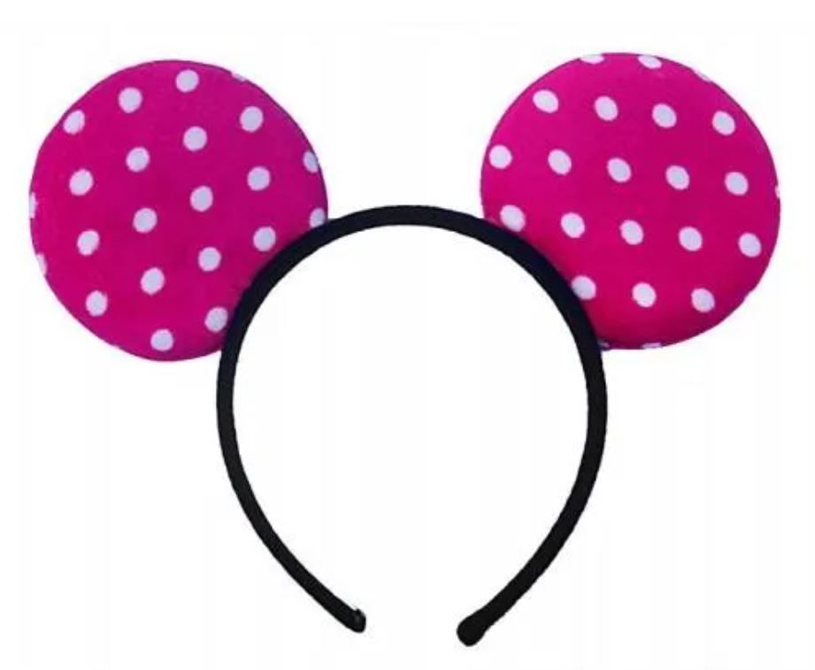 Matu stīpa ar Mikki ausīm rozā un baltiem punktiem
